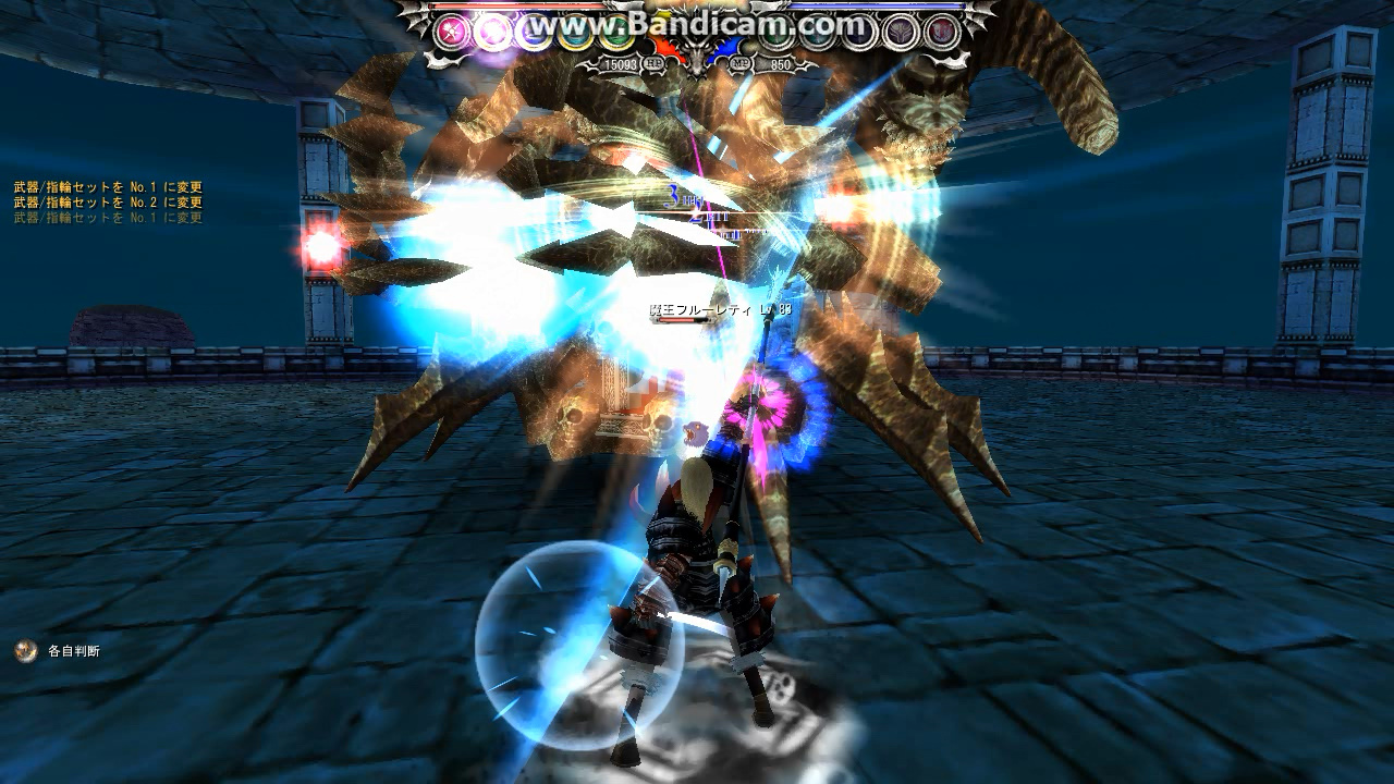 エンチャント風or水(風>水)、アンプリファイ、アンチコープス&デビル、アベイヤンス MPに余裕があるなら色即是空とアサルトマインⅡもあると良い(本当は無い方がいい) 第一&第二はスタッガーブロウ→アベイヤンスで動きを止めて殴り掛かる。手を破壊するとダメージになるため、分担して手足を攻撃すると良い。第二の自爆はスパークムーブ一回で避けれる。 第三は降ってきたところをアベイヤンスで止める、もしくは予め地雷を置いて是空役が拾う (この時是空役はレティにカウンターが当たらないように注意する。置く場所はマップの真ん中)後は爺と同じ要領でコンボを決める。